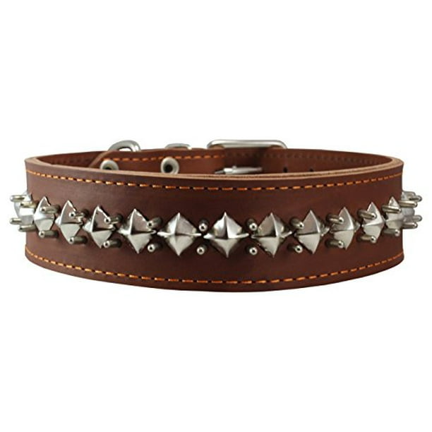 Thick Genuine Leather Spiked Studded Dog Collar Brown Sized To Fit 18 22 Neck Retriever Doberman Rottweiler Pitbull Walmart Com
