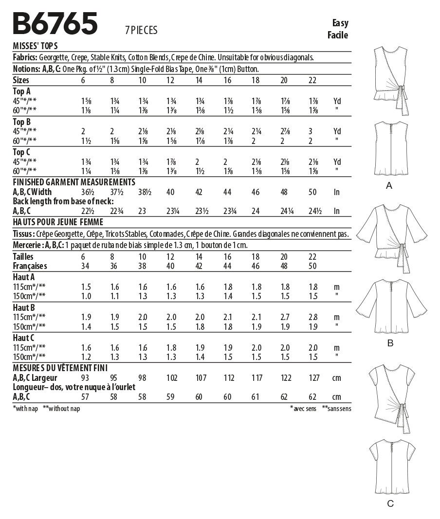 B6765 Misses Tops Butterick Patterns