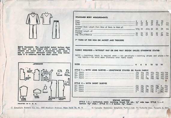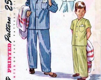 1940s Simplicity 2541 Vintage Sewing Pattern Boys Pajamas Etsy
